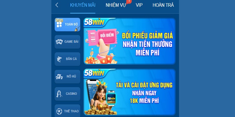 58WIN Tặng Tiền Cực Hấp Dẫn – Nhận Ngay, Chơi Là Có Thưởng!
